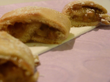 Aquestes galletes les vaig aprendre a fer en un curs monogràfic de reposteria impartit per na Sharon Vaknin. Podeu consultar la seva pàgina punxant aquí, fa coses boníssimes i ella és encantadora. Les seves eren amb poma i confitura de gingebre. Les variants del farcit són immenses i com que tenia plàtans a casa els vaig aprofitar per cuinar les galletes d’aquesta manera.