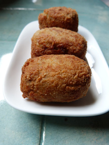 Aquí van les meves croquetes per a la Recepta del 15. Sempre que en faig són de pollastre, aprofitant la carn amb la que faig el brou. Per a aquesta ocasió volia fer alguna cosa diferent, així que vaig estar practicant fins que se m’ocorreren aquestes. Esper que vos agradin, és una recepta molt senzilla, només duen la feina habitual de totes les croquetes casolanes.