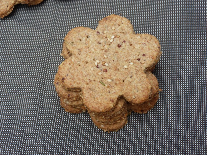 Fa uns quants anys em regalaren un llibre de cuina sobre herbes aromàtiques i una de les receptes que més em va cridar l’atenció eren aquestes galletes. No tenia els ingredients exactes però vaig fer les variacions oportunes amb el que tenia a casa. I bé, la pluja porta moltes coses bones i una d’elles va ser aquesta. Avís que són un vici i que si a més, les acompanyau d’un bon formatge, estau perduts… tenen un gustet especial que enganxa!!!