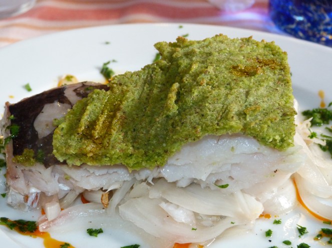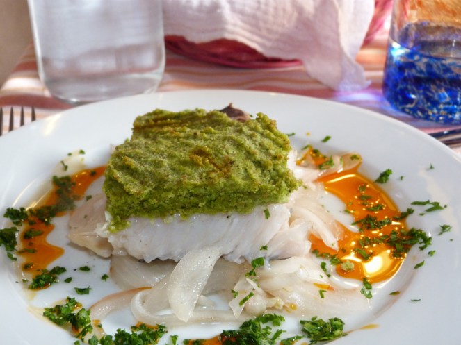 Servirem el peix sobre un llit de ceba i l’acompanyarem amb una culleradeta de l’allada i una mica de julivert picat.