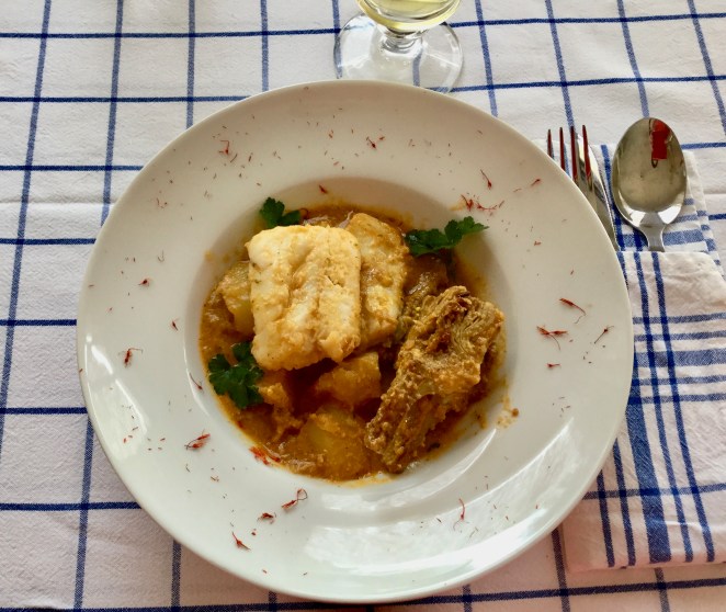 Aquest plat tan senzill i alhora tan esplèndid em sembla que parla molt de la Mallorca del seu temps: l’us de les espècies, del peix sec que es podia conservar amb facilitat, dels ingredients de proximitat i de temporada… Si teniu l’ocasió de revisar antics receptaris de cuina antics us n’adonareu de la riquesa i de l’elaboració dels plats, una riquesa que hem anat perdent pel camí a canvi d’una cuina més pràctica d’acord amb l’estil de vida actual. Reconec que no és fàcil compaginar llargs horaris de feina amb la cuina però vos anim a pegar-hi una ullada perquè segur que hi trobareu autèntiques delícies que no vos prendran tant de temps; la recepta d’avui n’és una bona mostra.