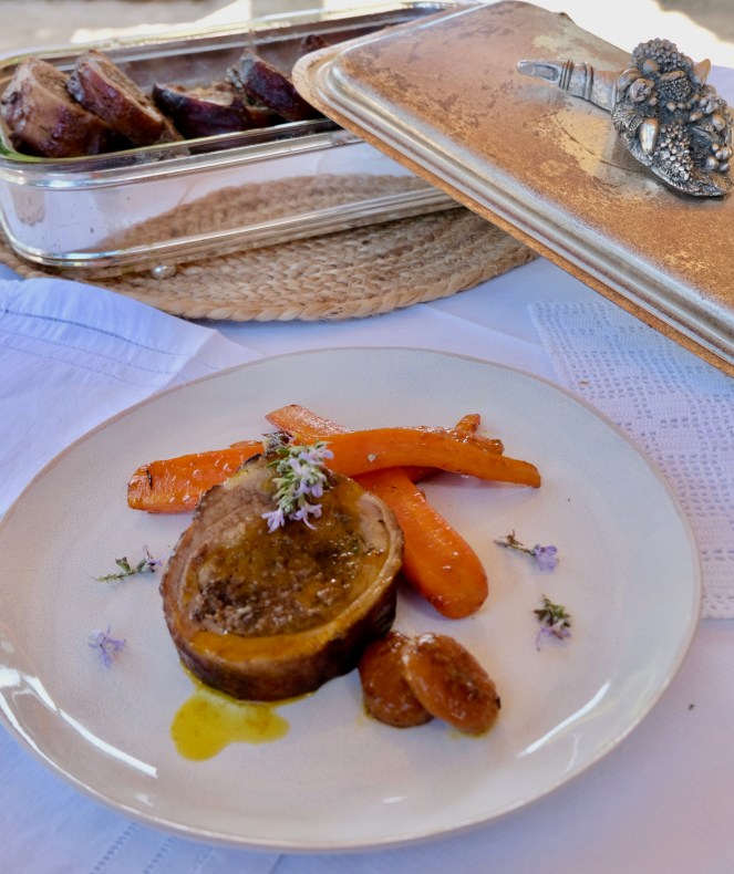 Servirem amb la carn tallada a rodanxes i acompanyada per les pastanagues.