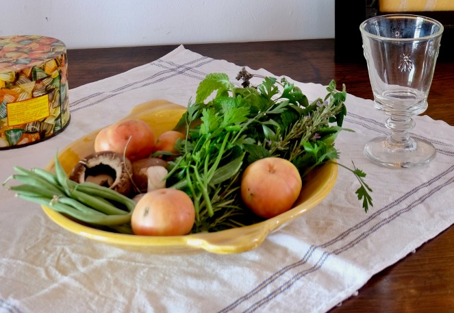 Tallarem la ceba en brunoise. Ratllarem les tomàtigues. Farem un fermall amb les herbes aromàtiques. Prepararem la resta de les verdures.