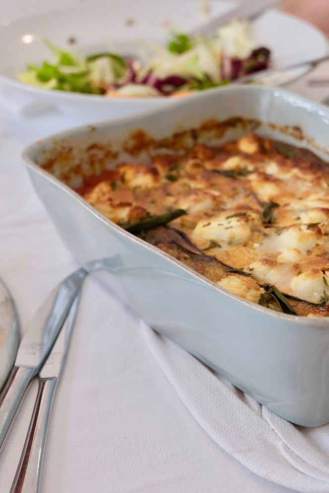 A tots i a cada un del receptaris de cuina antiga que he llegit hi ha una recepta de greixonera d’albergínies i totes són pràcticament similars. La que més m’ha cridat l’atenció, però, és la del llibre de “La cuina de sa Vall”, de n’Apol·lònia Adrover; perquè hi incorpora un allioli, un punt més de sofisticació. Jo he intentat fer-lo més lleuger i he optat per coure les albergínies al forn en lloc de fregir-les.