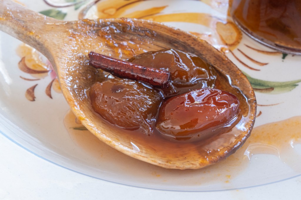 Aquesta deu ser la confitura més fàcil de fer del món, la que manco feina du i una de les més apreciades. Les prunes de frare llarg es posen senceres, amb pell i pinyol. Només hem de vigilar de treure’ls algun copet. És una fruita de temporada i no és fàcil de trobar. Sort de les bones amistats que t’avisen i t’aconsegueixen el millor producte. Per altra banda també hi ha la discusió sobre si s’han de picar o no per evitar que esclatin durant la cocció. Jo no ho vaig fer i la veritat és que no s’obriren gaire.