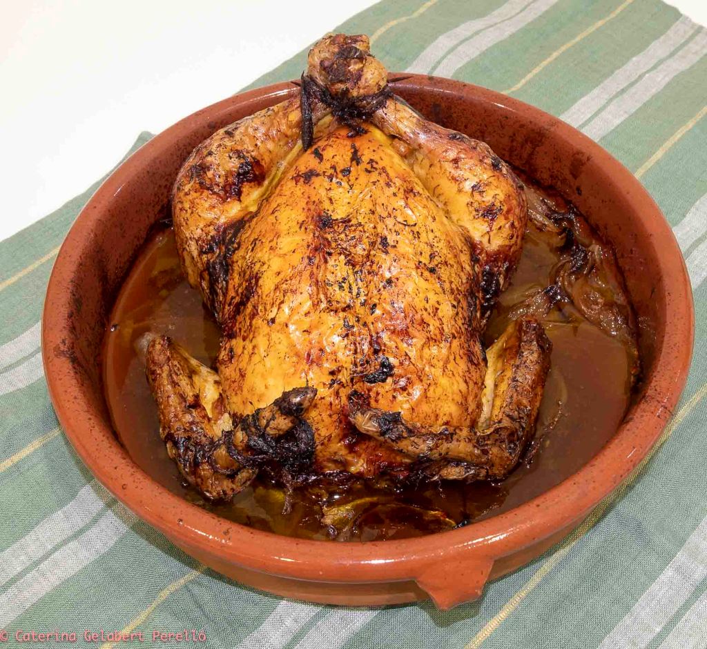 Potser ara l’aviram no té el mateix protagonisme que abans però si us agrada us convid a provar altres maneres de cuinar-lo com el que aquí veis. El farciment, en realitat, funciona més com una guarnició que s’acaba de coure dins l’animal, en un procés on s’intercanvien i s’amaren els sabors.