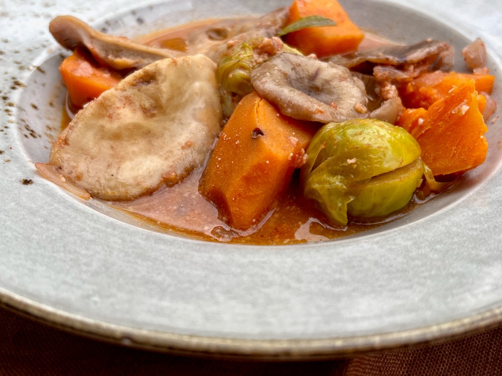 Els bolets són molt apreciats en la nostra gastronomia. Solen ser un gran aliat en arrossos i fideus, en aguiats o en coques de verdura. Però també com a protagonistes d’algunes receptes. Un dels plats més populars és el llom amb esclata-sangs, present en alguns restaurants de cuina tradicional. En el llibre Cocina selecta mallorquina de Coloma Abrinas, però, n’hi llegim dues, de ben contundents, que no tenen res a veure amb el plat que ara coeixem. En un d’elles es farceix el capell dels esclata-sangs de sobrassada i es couen en el forn. Es fregeix el llom i es posa sobre els bolets, a més de pa fregit en l’oli del llom. En l’altre la carn de porc es cou acompanyada dels bolets trossejats, botifarró i salsitxes. Quan es ben cuit es serveix damunt cantons de pa torrat. Altres maneres ben mengívoles com el frit de bolets, amb grells i les primeres carxofes o les capsetes d’esclata-sangs, cuinats amb o sense carn, ceba, all i julivert, pa ratllat i acabats de coure al forn són opcions a tenir en compte. Igual que la recepta d’avui, una cassola de bolets, amb verdures i tubercles de temporada. Una opció vegetariana, econòmica, ràpida i senzilla, que es pot modificar al vostre gust.