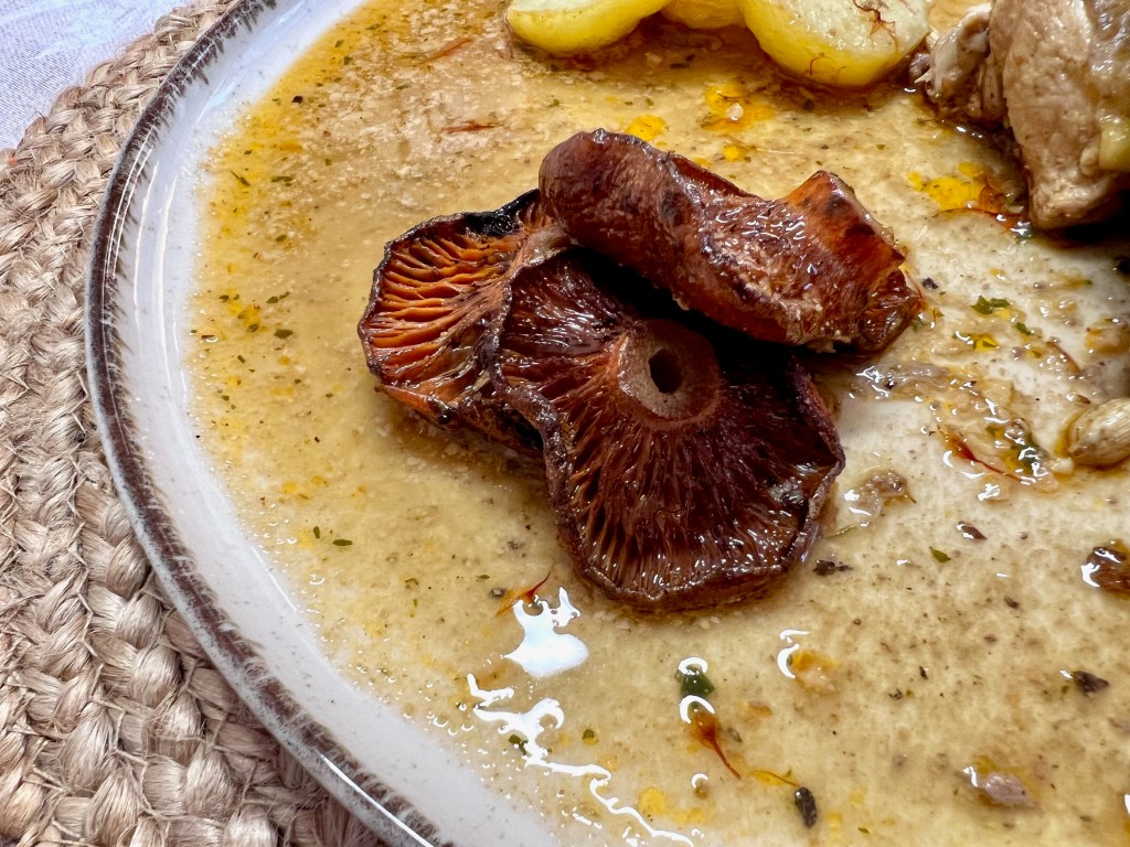 Mentrestant picarem el fetge amb les ametles torrades o el pa i l’all. Picarem les especies amb el morter, al vostre gust. Uns 10 minuts abans d’apagar el foc hi afegirem les espècies i la picada. Tornarem a tapar fins que sigui el moment. Podem acompanyar el guisat amb patató o amb esclata-sangs ara que n’és la temporada. Si no trobau faraona podeu provar amb ànnera o amb pollastre.