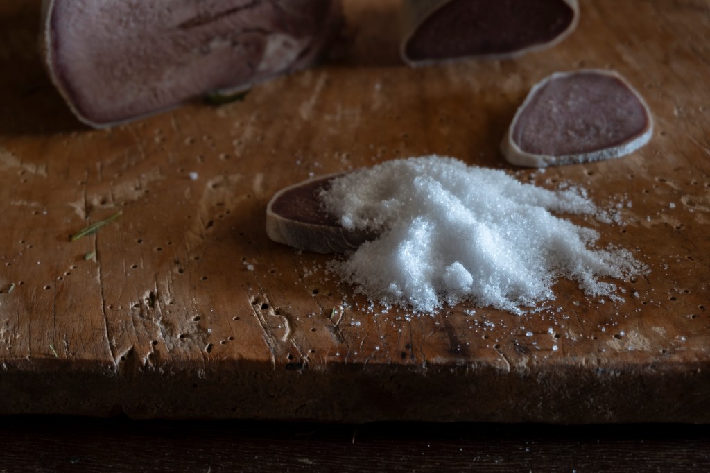 Farem un llit de sal en un recipient i hi posarem la llengua al damunt. La cobrirem amb la resta de sal i la posarem, tapada, dins la gelera. L’anirem girant cada dia, cobrint-la bé amb la sal. Repetirem l’operació entre 10 i 12 dies.