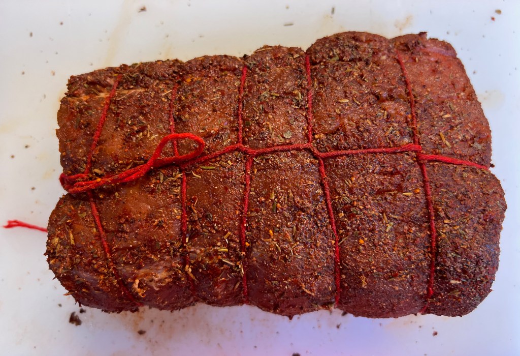 Mesclarem les espícies i hi arrebossarem el llom. El fermarem per donar-li forma i el tendrem a la gelera unes 12 hores.