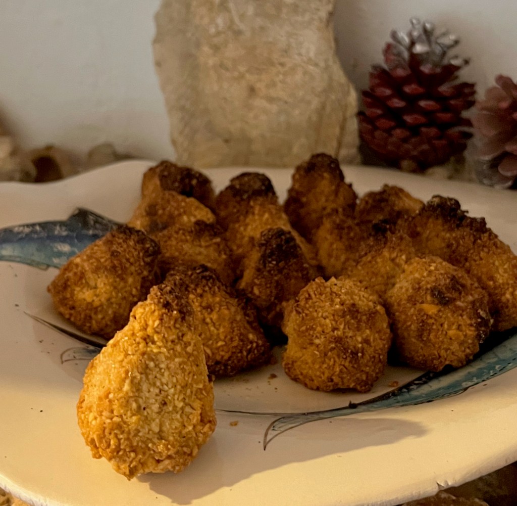 Agafarem cullerades de pasta i amb les mans les donarem forma piramidal. Posarem cada porció damunt una palangana que haurem cobert de paper de forn. Els courem a 160 graus durant 15 minuts o fins que vegem que són cuits. Si es couen molt aviat podem baixar la temperatura a 150ºC. Els treurem i deixarem que refredin abans de guardar-los en un recipient hermètic. Ben estotjats poden durar molt de temps.