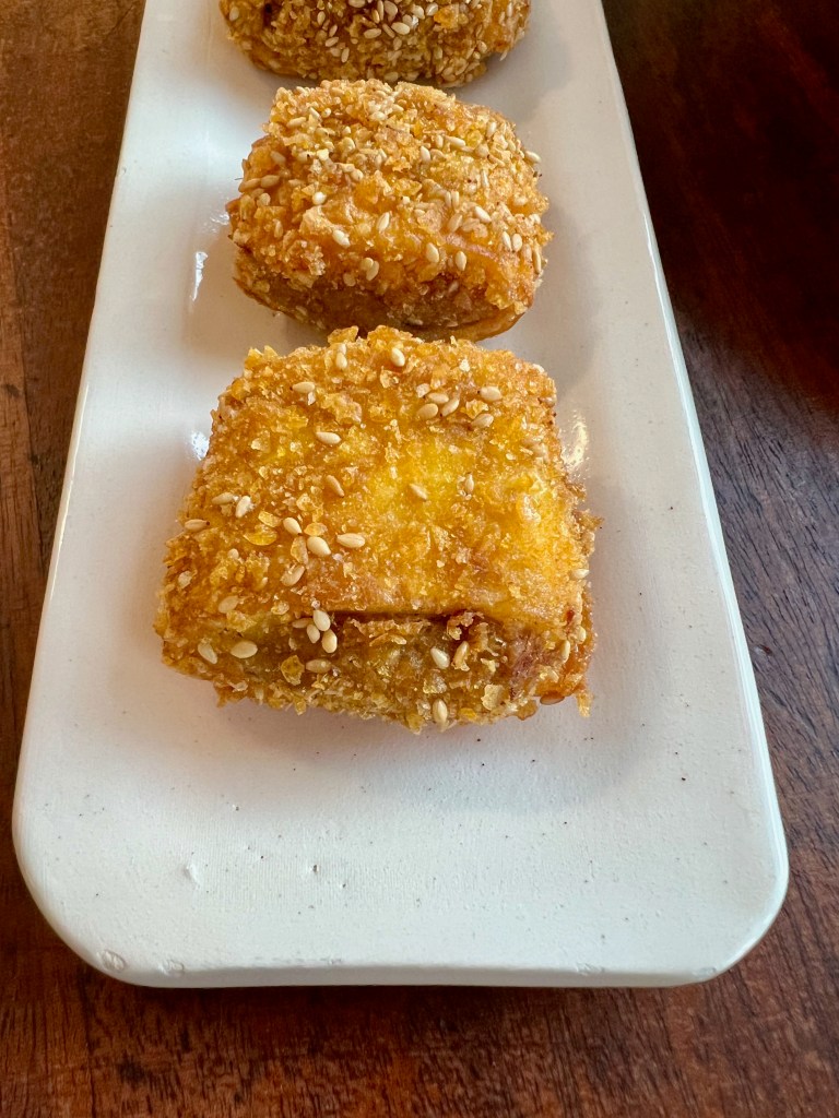 A més de les croquetes, potser per influència o com una versió apareixen receptes com els piosnonos (Alcàntara Penya), unes cassoletes de la mida d’una nou fetes amb patata bullida, que s’omplen de pasta de croquetes, s’arrebossen i es fregeixen. O el frit de truitetes (Antics receptaris) que compta amb una versió gairebé igual amb la recepta de La cuinera pràctica (Felanitx, 1935) anomenada grips d’ou.