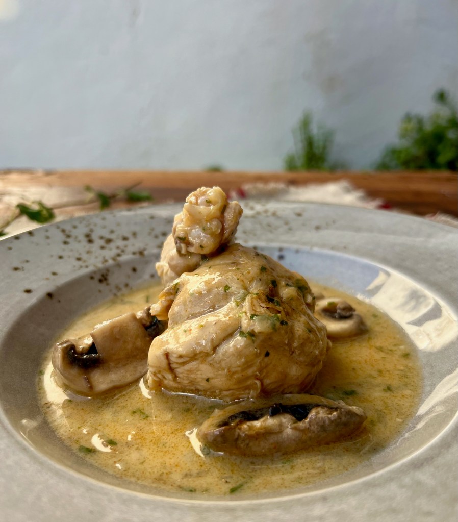 La recepta d’avui és quasi fidel al friguesé del receptari Llabrés. Només hi he afegit vi blanc i brou de pollastre en lloc d’aigua. El resultat és sorprenent i saborós. La salsa final és de les que demana pa. Esper que sigui del vostre gust.