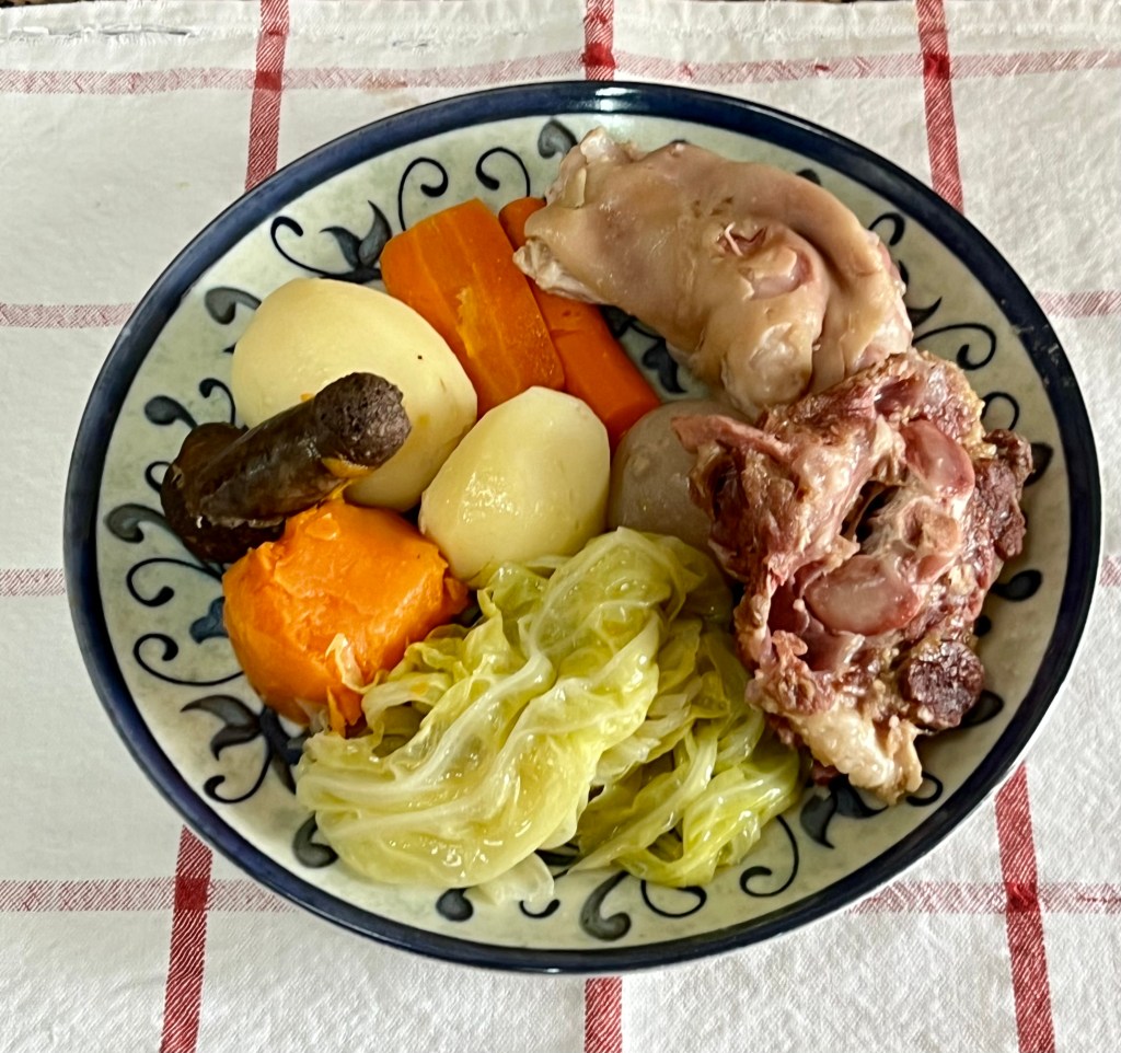 fins que la carn es desprengui de l’os. En una altra olla hi bullirem les verdures i el botifarró amb