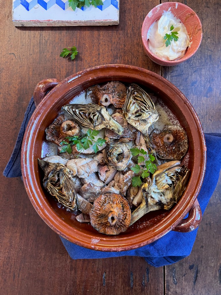 Els plats es repartien arreu de la taula del bufet. Ensaladilla, rebosteria salada i dolça, petits bocins de porcella rostida, cuixetes de pollastre amb el cap de l’os embolicat en paper d’al·lumini per a què fes bon menjar sense coberts i, en moltes ocasions embotits i carns fredes d’elaboració casolana. No hi podia faltar la bufeta de sobrassada o la pultrú, si era a l’estiu, o les llangonisses i els botifarrons encara recents de les darreres matances. Un tast del millor de cada casa.