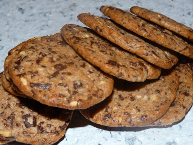 Bàsicament són totes iguals, només canvien alguns ingredients o els farcits. No és un gran llibre però sempre va bé per donar idees. Un cap de setmana que vaig tenir els meus nebots a casa vaig aprofitar per fer-ne unes de xocolata amb ells. La cuina és un recurs fantàstic pels nins. Els sol agradar remenar i feinejar amb els aliments i pens que després aprecien més el que mengen. Com que a casa meva no hi ha juguetes, les galletes varen ser un bon joc. Les que he fet avui sortien en el receptari com a llengües de moix. Jo no devia estar inspirada i no em sortien gens maques així és que vaig tirar pel dret i amb un tassó les vaig fer rodonetes. Vosaltres mateixos.